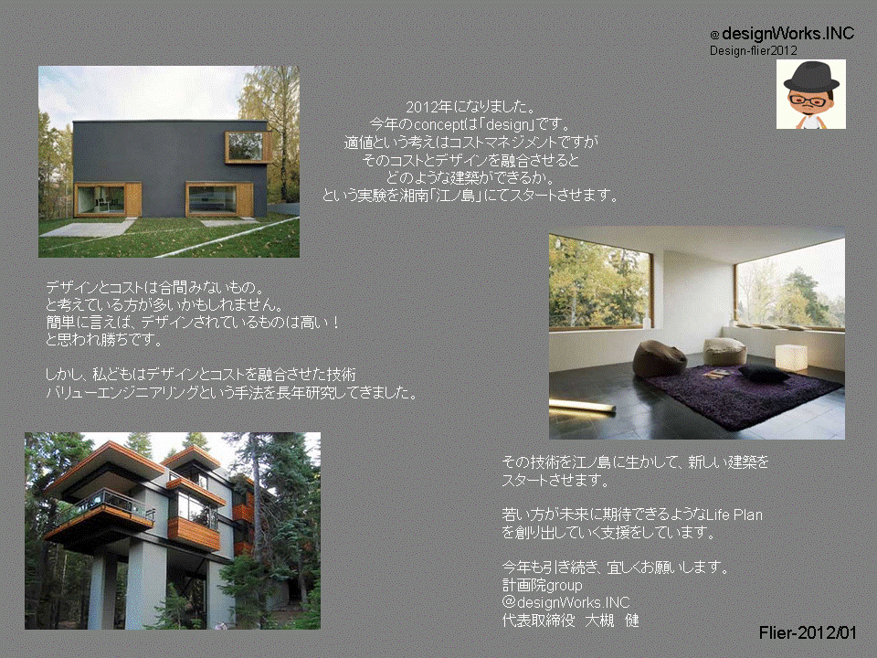 コストをデザインをバランスシートによって最高なものを創り出す!!江の島プロジェクトの成功を祈りつつ。頑張ります。